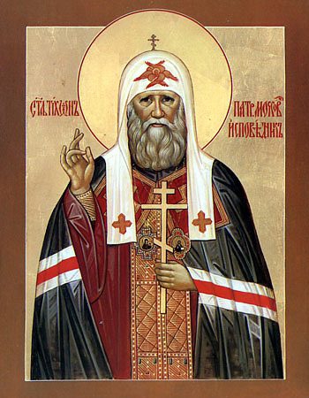 Патриарх Тихон (в миру Василий Иванович Белавин) родился 19 января 1865 г. в городе Торопце Псковской губернии в семье священника. Окончив курс торопецкого духовного училища, он поступил в Псковскую духовную семинарию, а по ее окончании ? в Петербургскую духовную академию, которую окончил в 1888 г. Примечательно, что товарищи по семинарии шутливо называли скромного, благодушного и готового всегда помочь друзьям Василия Белавина «Архиереем», а в академии, словно предвидя его будущее служение, студенты прозвали его «Патриархом» за серьезность и степенность нрава.