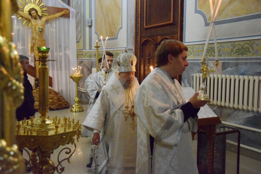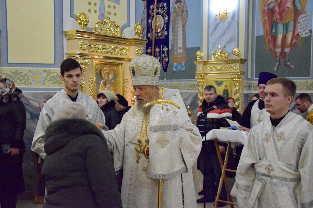 На полиелее после прочтения Святого Евангелия владыка Антоний помазал всех присутствовавших на богослужении елеем.