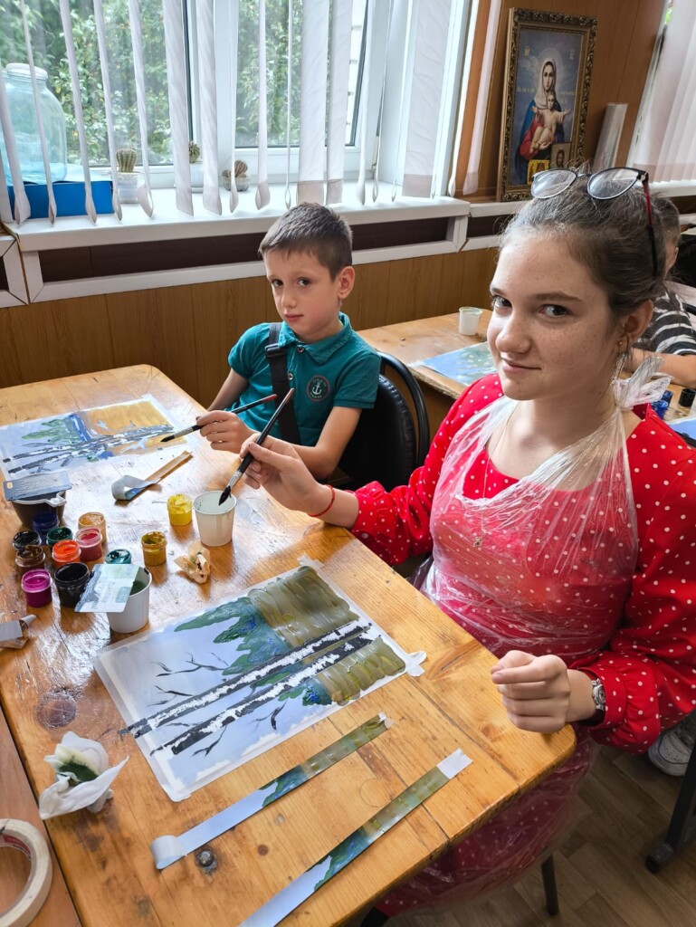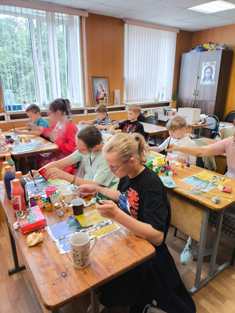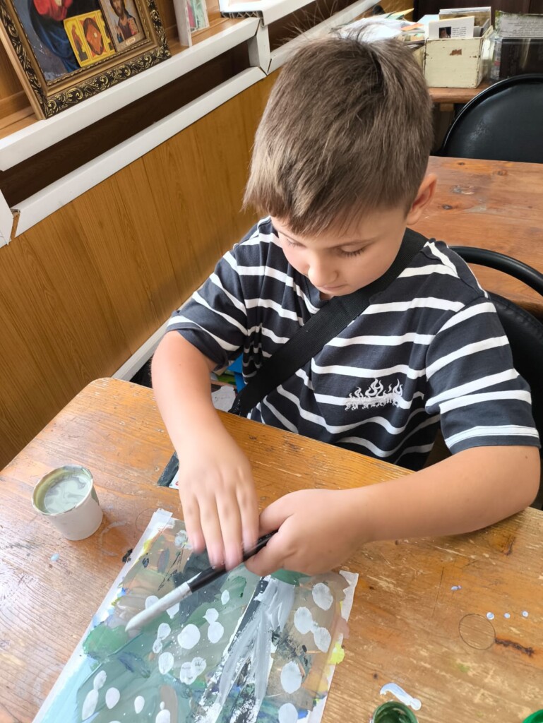 Перед началом учебного года в Воскресной школе прошло чаепитие, на котором дети поделились своими впечатлениями о летнем отдыхе. Затем для желающих был организован мастер класс рисования гуашью на тему «Красота Божественного мира»