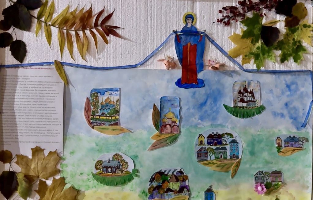 Воспитанники младшей группы с любовью и старанием изготовили праздничные открытки, украшенные символами этого светлого торжества. Старшие ребята — молодёжная группа — трудились над созданием большого тематического плаката, на котором отразили как историю явления Покрова во Влахернском храме, так и значение этого праздника для духовной жизни современного человека и Церкви.