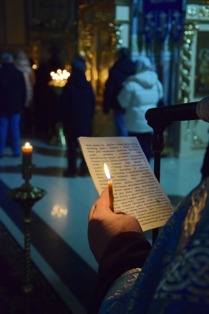 Перевод: Ныне предвестие милости Божией (к людям) и проповедь о спасении людей: в храм Божий торжественно входит Дева и всем возвещает о грядущем Христе. Громко воскликнем к Ней и мы: радуйся, исполнение Промысла Создателя о нас!
