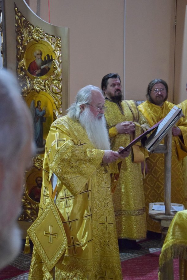 По окончании богослужения Владыка Тихон обратился к духовенству и мирянам с архипастырским словом, после чего состоялось итоговое епархиальное собрание.