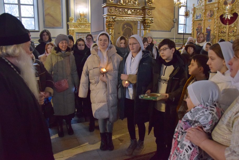 После богослужения Владыка тепло поздравил всех с воскресным днём и с престольным праздником. Он напомнил о подвиге святой Татианы — её мужестве, верности Христу и непоколебимой стойкости в исповедании веры. Также митрополит Тихон отметил, что этот день традиционно считается Днём российского студенчества, и призвал молодёжь соединять жажду знаний с духовной жизнью, ведь истинное просвещение рождается в любви к Богу и ближнему.