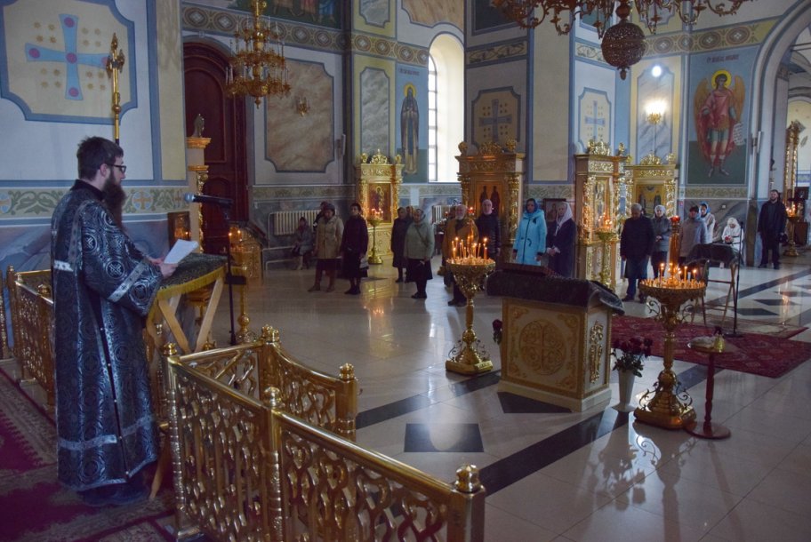В среду вечером в храме — особая атмосфера. Верующие стоят с зажженными свечами. В центре храма — аналой с иконой Марии Египетской.